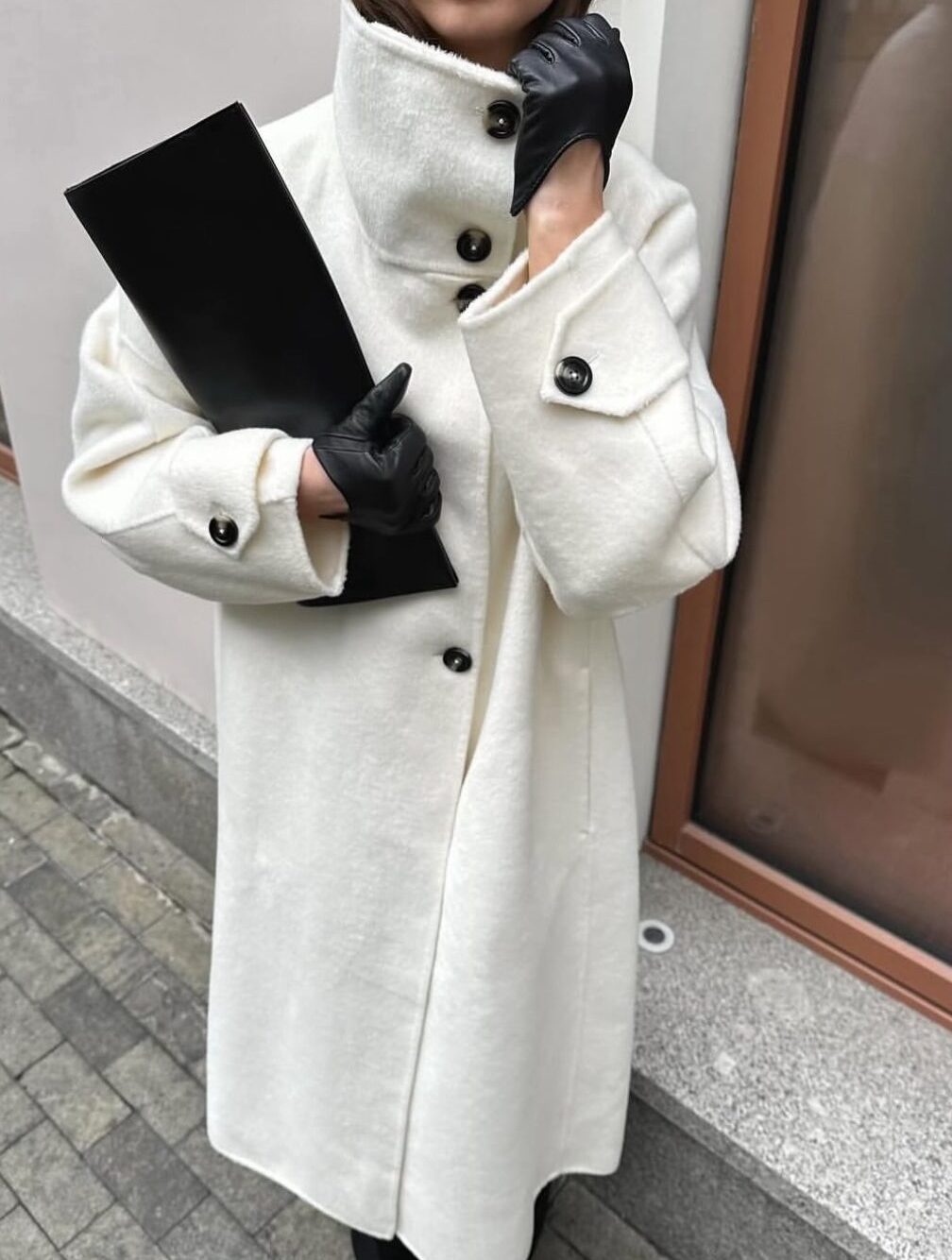 Pallto e gjatรซ e bardhรซ me prerje oversize qรซ kombinon ngrohtรซsinรซ me elegancรซn minimale. Njรซ model modern, i rehatshรซm dhe i pรซrshtatshรซm pรซr รงdo outfit tรซ sezonit.